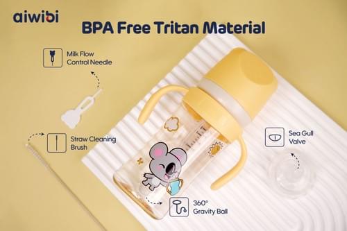Made from lightweight, BPA-free Tritan, Aiwibi Baby Bottle is shatterproof and durable. The breast-like soft silicone nipple minimizes air intake and nipple confusion, while vertical lines keep its shape. An advanced anti-colic system reduces bloating, and the inverted triangle vent valve ensures smooth, leak-free flow. With a unique handle for easy grip and a gravity ball design for 360°free suction, it includes a nipple brush and replacement nipple. Various nipple flow rates and bottle sizes allow the bottle to grow with baby.