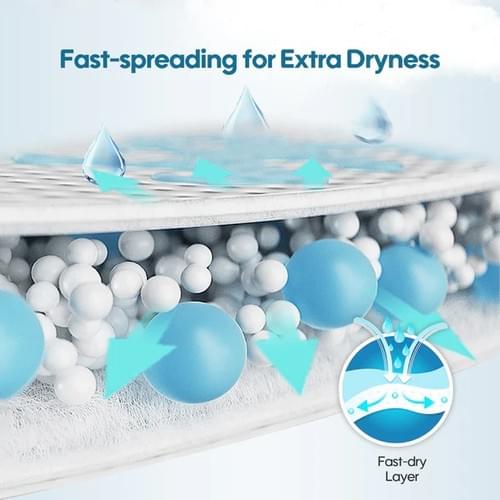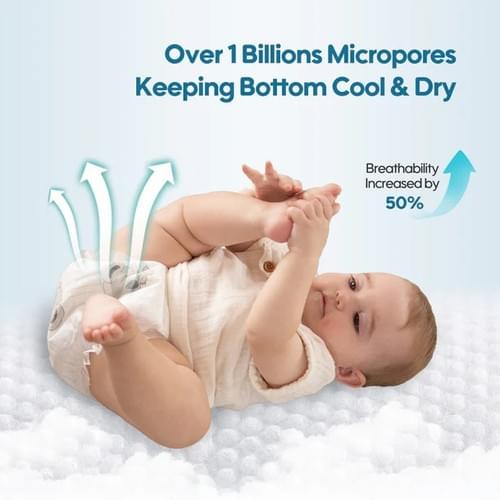 Aiwibi Australia Premium Newborn Diapers are made from tender non-woven fabric, the absorption core is fluff pulp mixed with a few SAP, making the diaper comfortable for the newborn to wear while ensuring the instant absorption ability. These tender diapers are crafted for your newborns, with thoughtful umbilical cut in the waist to protect your little one's unhealing umbilical. Hypoallergenic materials, no parabens, chlorine or other harsh chemicals, protecting your newborn's delicate skin day and night.